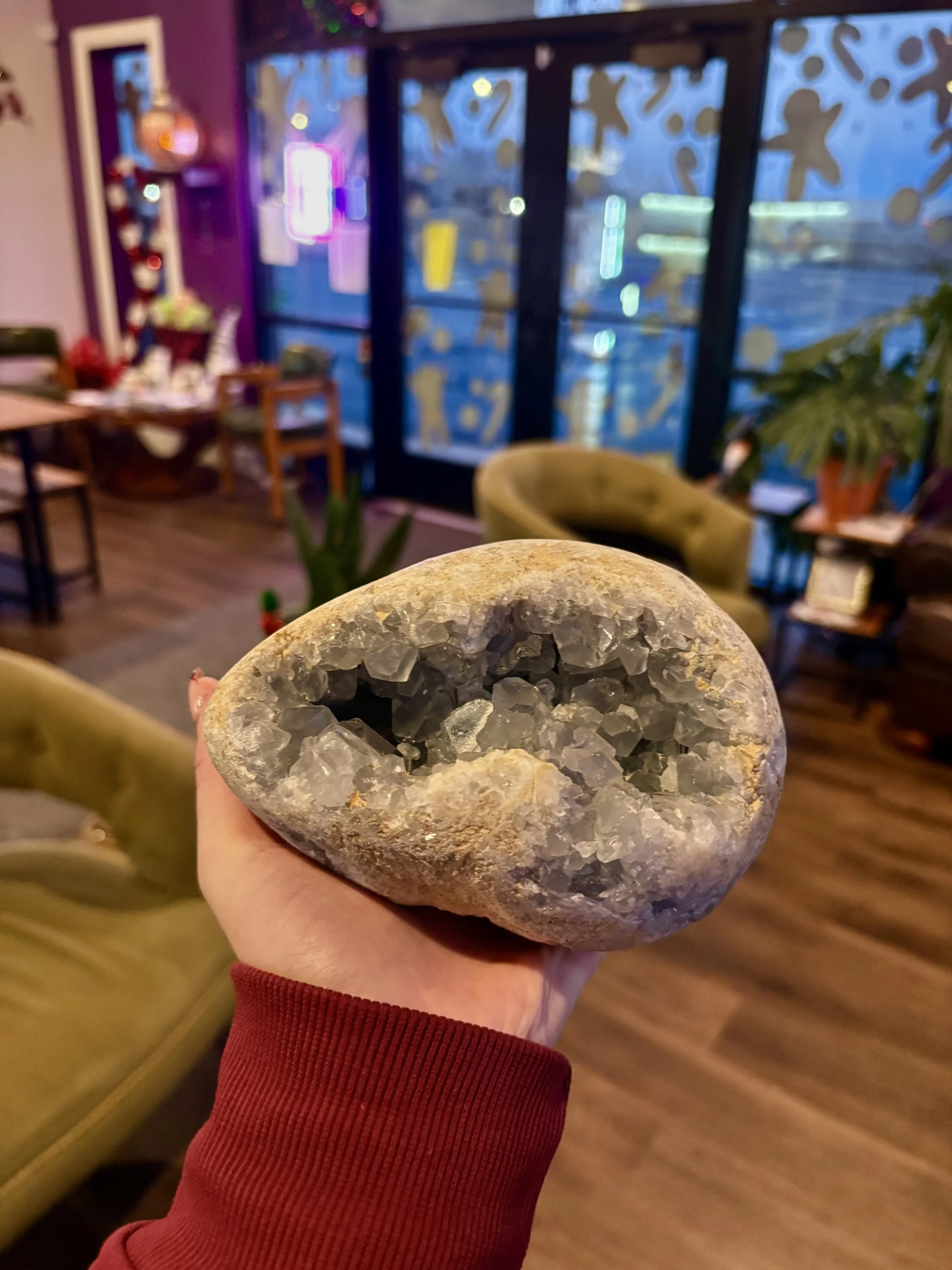 Blue celestite is such a high vibrational stone! Activating your third eye and crown chakra to help accomplish divine communication, inner peace, and spiritual connections.